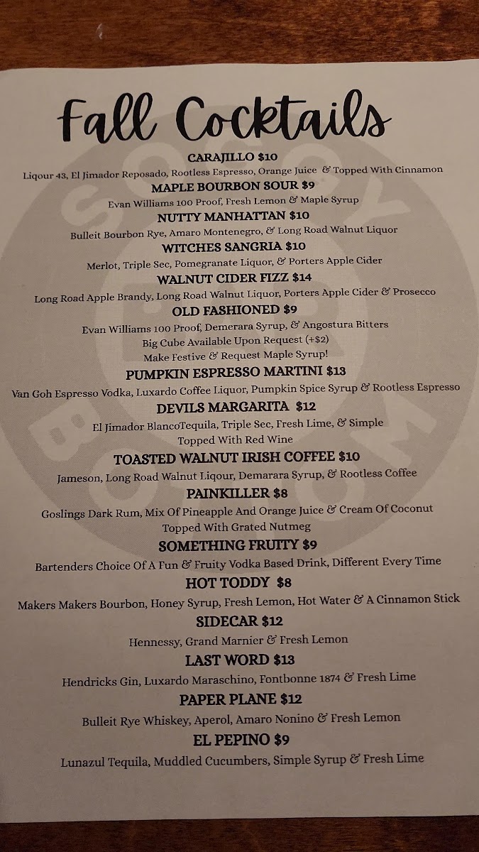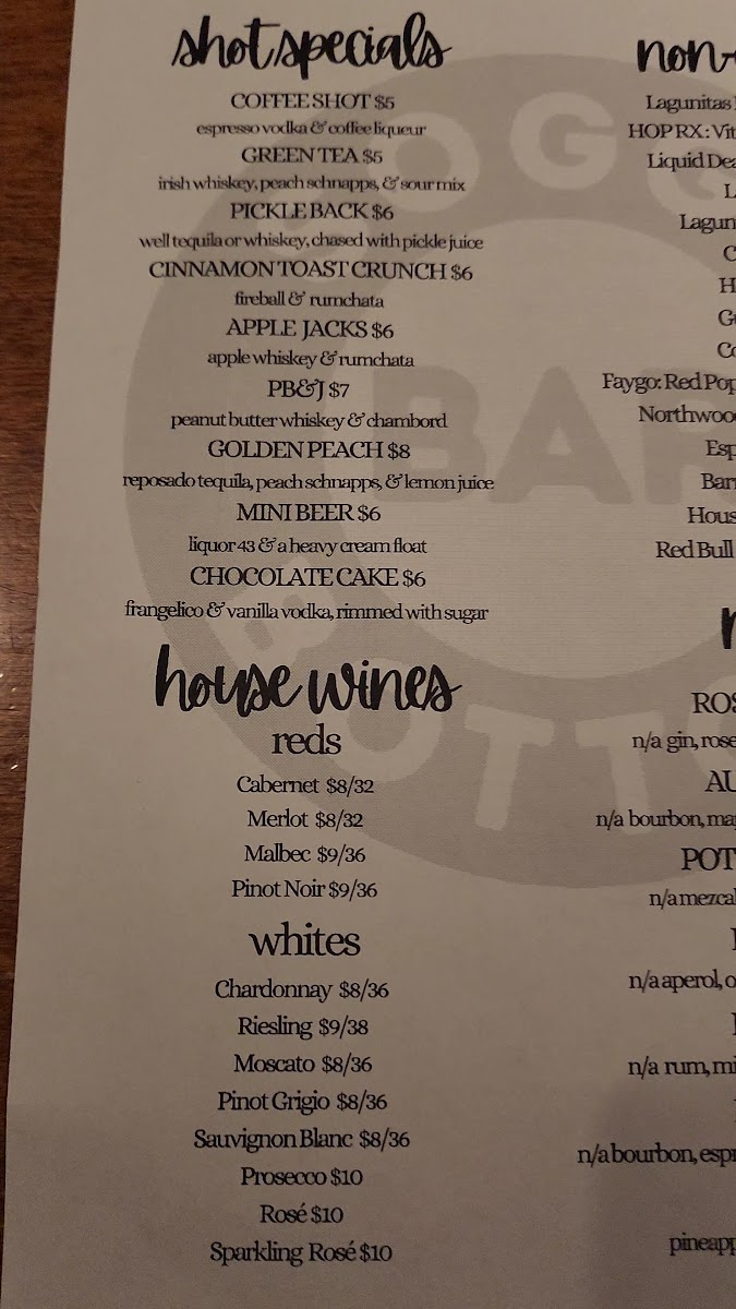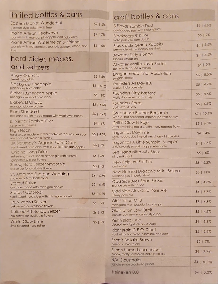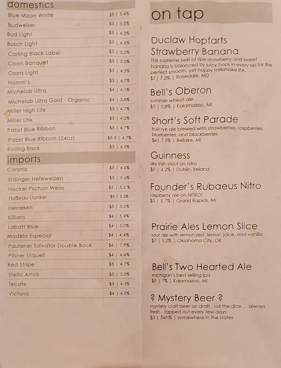 This menu is suitable for casual meals, quick orders, or enjoying drinks paired with light to hearty bar food. It offers options appropriate for lunch, dinner, or social drinking occasions.